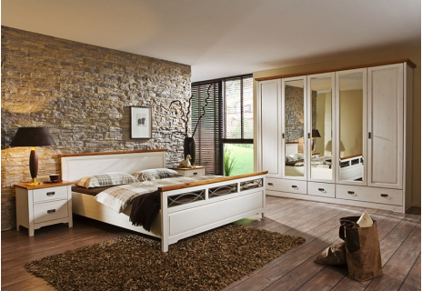 Nábytkem kolekce Country Inn jednoduše zařídíte ložnici, obývák i jídelnu. Samozřejmostí je odolná a stabilní konstrukce, spolehlivé mechanismy kování a nevšední detail v podobě kovových úchytek a aplikace v čele postele. Transparentní bílý lak nezakrývá kresbu masivního borovicového dřeva úplně, ale podtrhuje přírodní charakter nábytku. Vybrat si lze ze dvou povrchových úprav – bílý lak nebo kombinace bílého laku s detaily v medovém odstínu bernstein. V nabídce je také pět pečlivě vybraných příplatkových odstínů. Model Country Inn je vyroben z masivního borovicového dřeva. Záda skříní a komod jsou vyrobena z HDF desek a korpusy zásuvek z překližky.