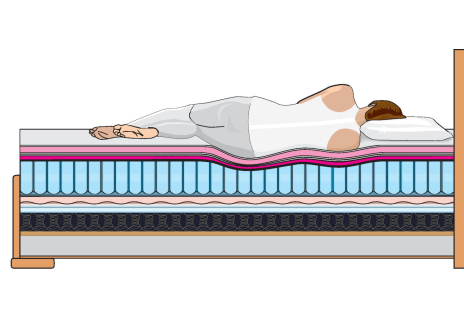 - Sendvičová 7-zónová matrace, střed z pojeného polyuretanu a dvě desky s masážními nopy, které zajišťují vzdušnost a velmi kvalitní spánkový komfort