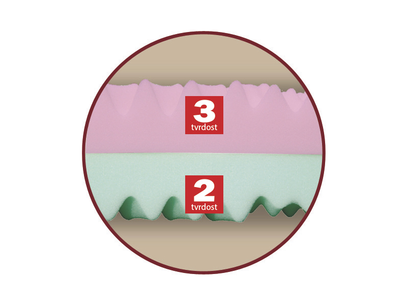Sedmizónová matrace s volbou dvojí tvrdosti je složena ze dvou vysoce kvalitních elastických pěn tvarovaných do masážních nopů. Nopy zabezpečují prokrvení pokožky a uvolnění svalů během spánku a nadzvedávají potah, čímž dochází k lepšímu provzdušnění matrace. Matrace se vyznačuje výbornou elasticitou a odolností. Je určena pro širokou škálu uživatelů a je vhodná na všechny typy roštů. Celková výška matrace cca 17 cm.