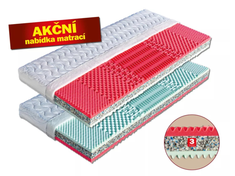 - Materiál matrace………………..Elastická MediaFoam pěna, antibakteriální pěna Sanitized a PUR pěna