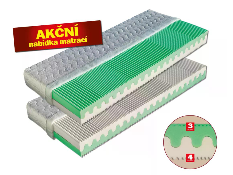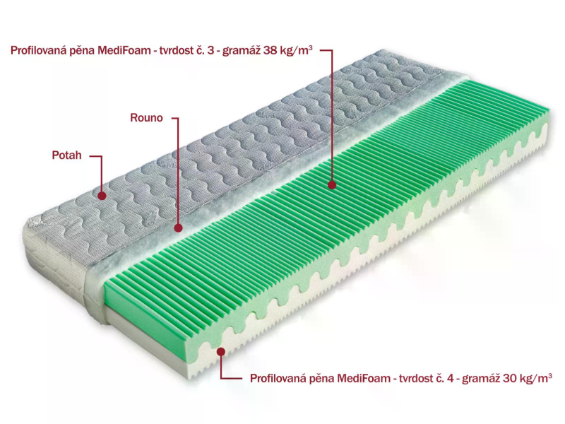 Pětizónová matrace s volbou dvojí tvrdosti je složená ze dvou velmi kvalitních a elastických pěn MediFoam (38 a 30 kg/m³). Jemná masážní profilace na povrchu těchto pěn přispívá k většímu provzdušnění matrace. Pěny jsou spojeny vlnkovitým profilem bez použití lepidla. Je vhodná pro zákazníky, kteří upřednostňují tvrdší matrace. Matrace je vhodná na všechny typy roštů. Celková výška matrace cca 18 cm..